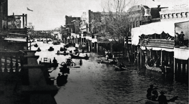 The disaster even disrupted the inauguration day of California Governor Leland Stanford. On Jan. 10, 1862, floodwaters swept through Sacramento, which forced Stanford to travel from his residence to the capitol building by rowboat to be sworn into office.