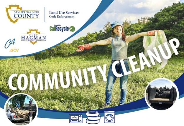 San Bernardino County Code Enforcement and the Solid Waste Management Division will be hosting a free bulky item disposal event for residents of the countyโs unincorporated areas. During this event, disposal containers will be available for accumulated trash, e-waste and tires, along with on-site confidential document shredding services. No business materials will be accepted. Free disposal services will end at noon or when the equipment is full.