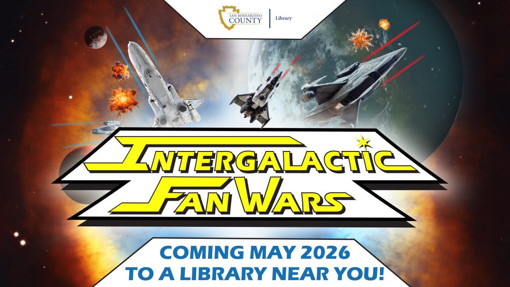 This May, San Bernardino County Library branches will transform into immersive battlegrounds of imagination during โIntergalactic Fan Wars,โ an all-ages celebration, inviting the community to take part in the ultimate sci-fi showdown: โStar Wars vs. Star Trek.โ